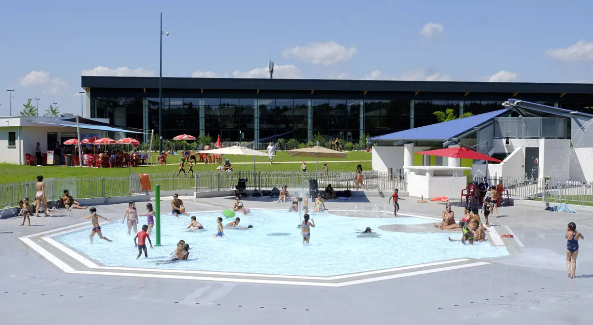 - 1 bassin d’initiation pour les plus petits, de 174 m² avec jets d’eau